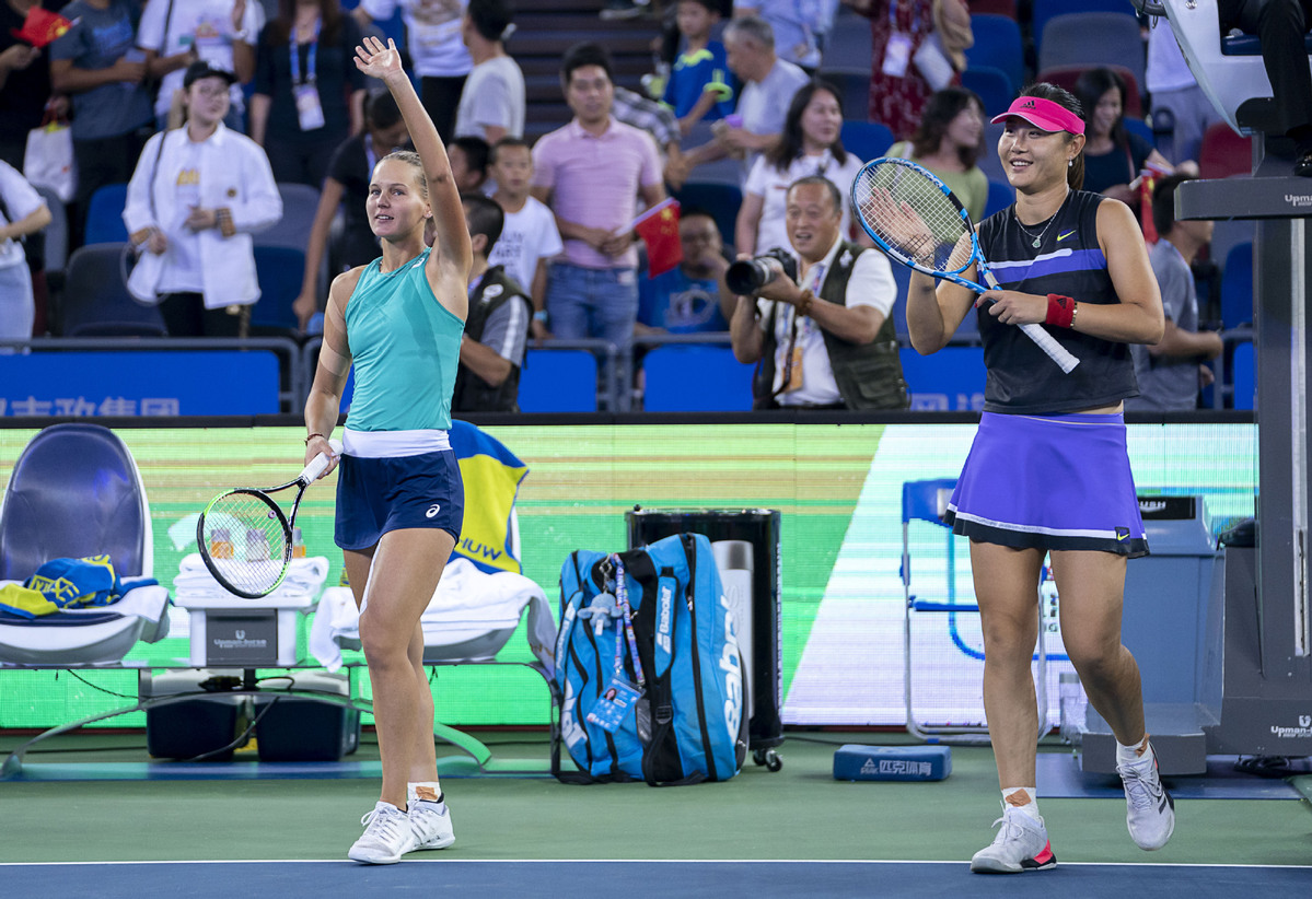段颖莹(右)和Veronika Kudermetova获胜后庆祝。[图片/新华社] 中国武汉-段颖颖成为武汉公开赛的首位中国冠军,她和搭档Veronika Kudermetova在今晚的双打决赛中以7-6(3),6-2击败了Aryna Sabalenka和Elise Mertens。   当天早些时候,萨巴伦卡赢得了武汉公开赛的单打冠军,她打算继续打双打决赛,白俄罗斯大满贯选手在比赛的开幕式比赛中获得了王牌。   然而,段(Duan)/库德梅托娃(Kudermetova)在中场比赛中与萨巴伦卡(Salalenka)/梅尔滕斯(Mertens)比赛相当,两对在第一盘比赛中均获得三张ace,并且在决胜局中两人都没有输掉任何比赛。   容忍的人群咆哮着,Duan / Kudermetova在抢七中扭转了局面,以4-0领先,最终以7-3胜出。   第二局以同样紧迫的方式开始,两人将各自的服务比赛保持在3比2,然后段/库德梅托娃伸出了双腿,参加了随后的三场比赛,并以6比2胜出。